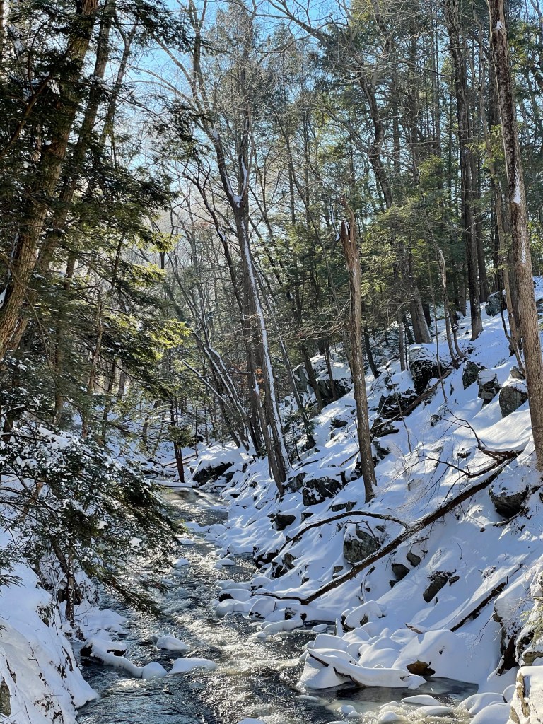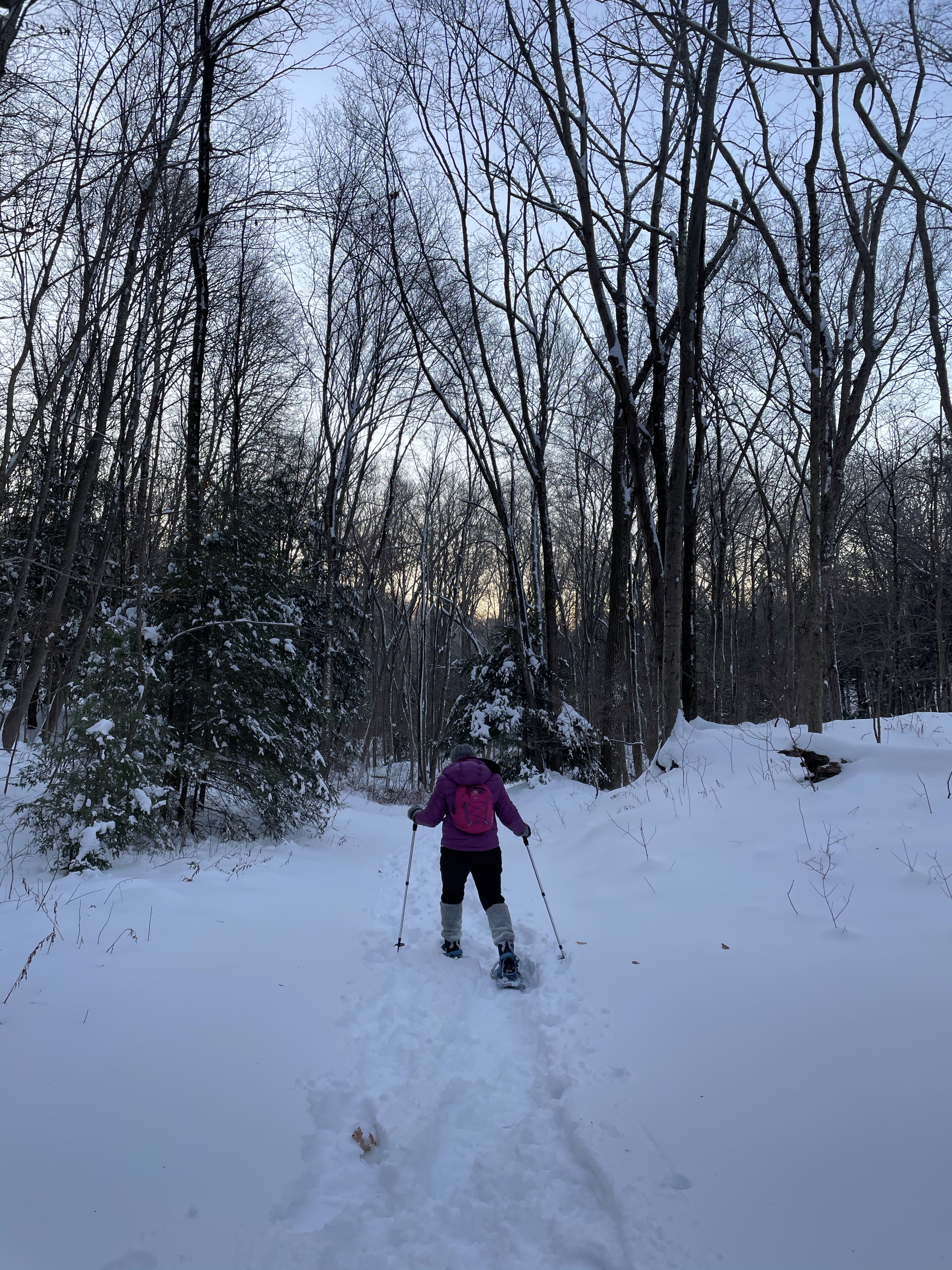 In December 2020 my sister and I went snowshoeing at Southford Falls and it was breathtaking! I loved it because we went at sunrise and saw the sun come up there, the snow covered everything, there were very little people and it was a great workout. As with hiking my motto is usually the early bird gets the worm; definitely applied to this snowshoeing morning.