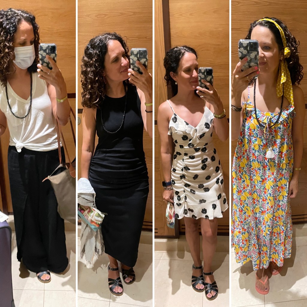 I only brought two pairs of shorts, the pink ones below (Boden) and a Target jean short pair. Other than that I wore dresses and coverups. For shoes I flew and wore to dinner a few times my black Salt Water sandals and then only brought two pairs of flip flops. That’s it for shoes!