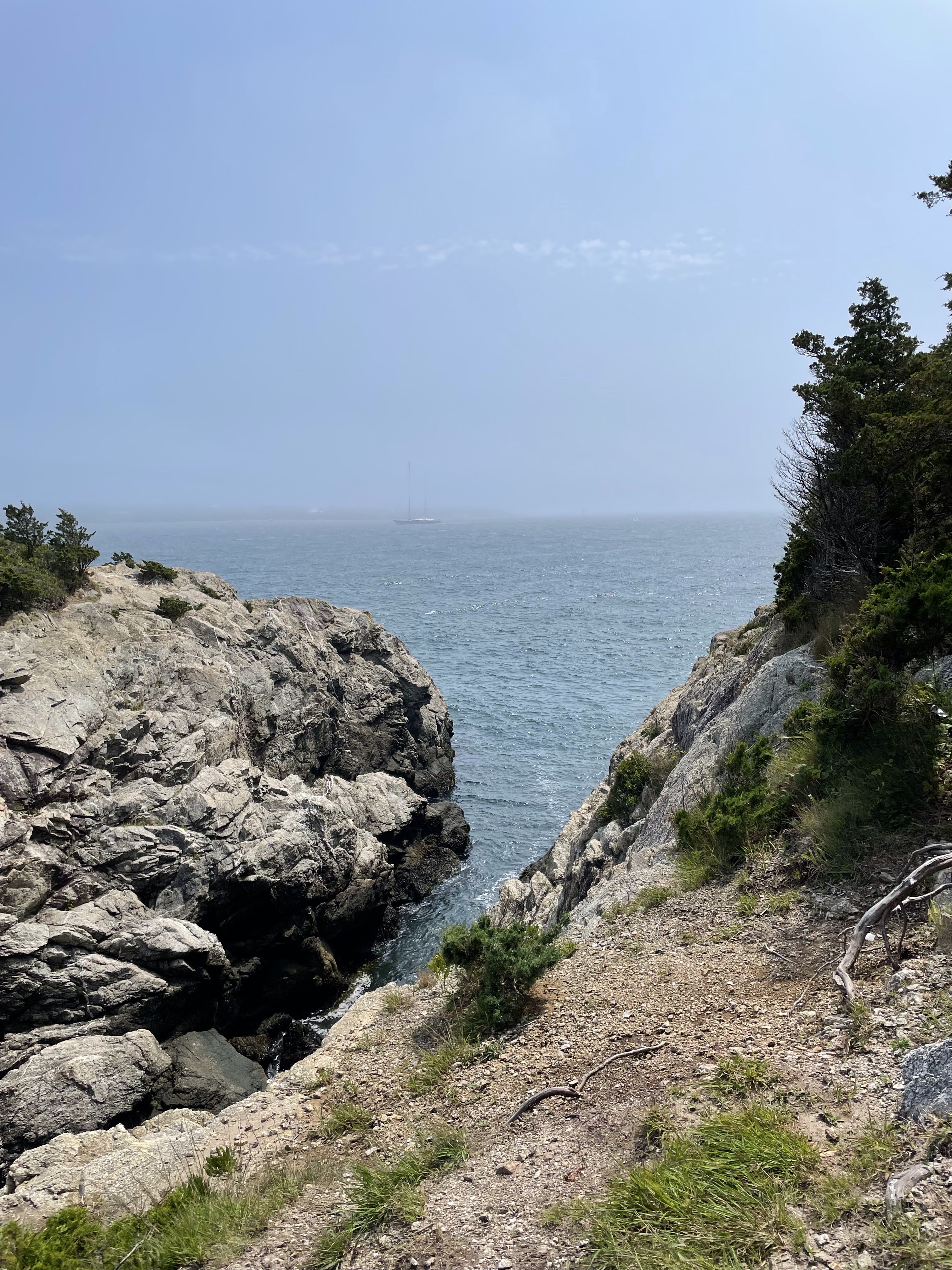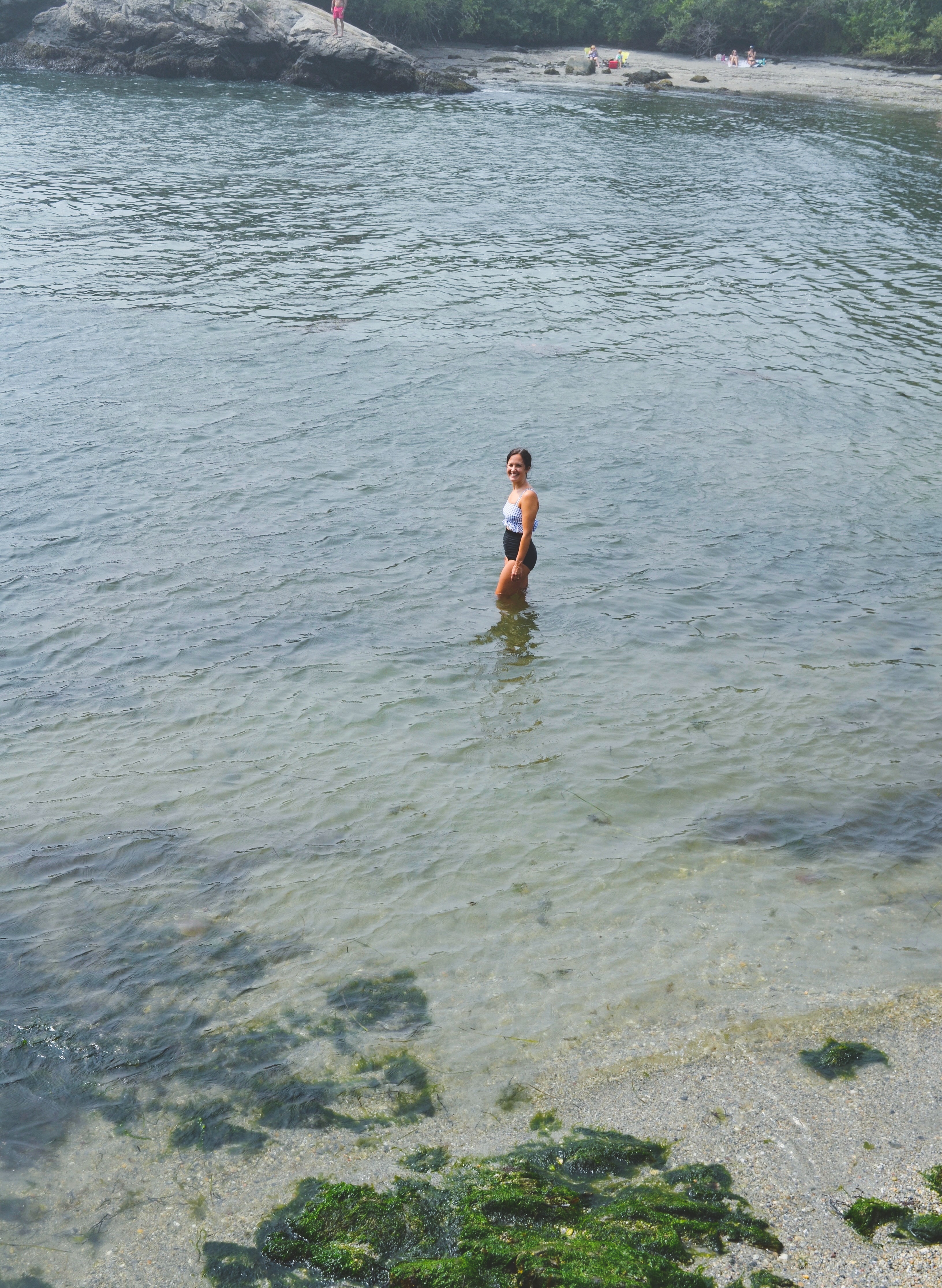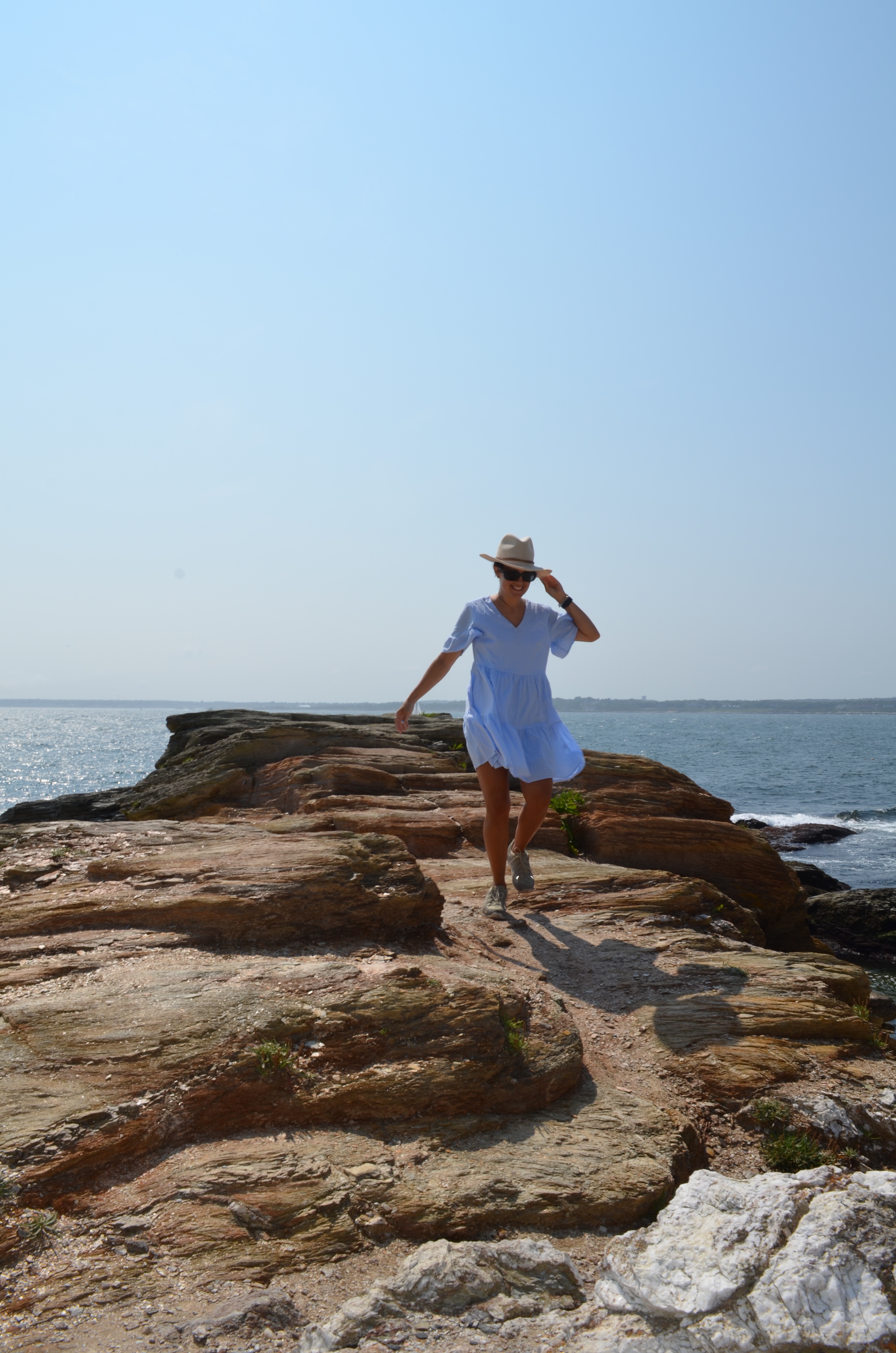 From there we hoped back in the car and drove to the very last parking area, where the “beach” is. Not really one of the nice sandy beaches that Rhode Island has a plethora of, but one that has many cool places to get in the water. The day had a haze over it so the water wasn’t as clear blue as it normally is. We went about two hours before low tide, an ideal time so you can see all the large rocks and not jump in somewhere dangerous.