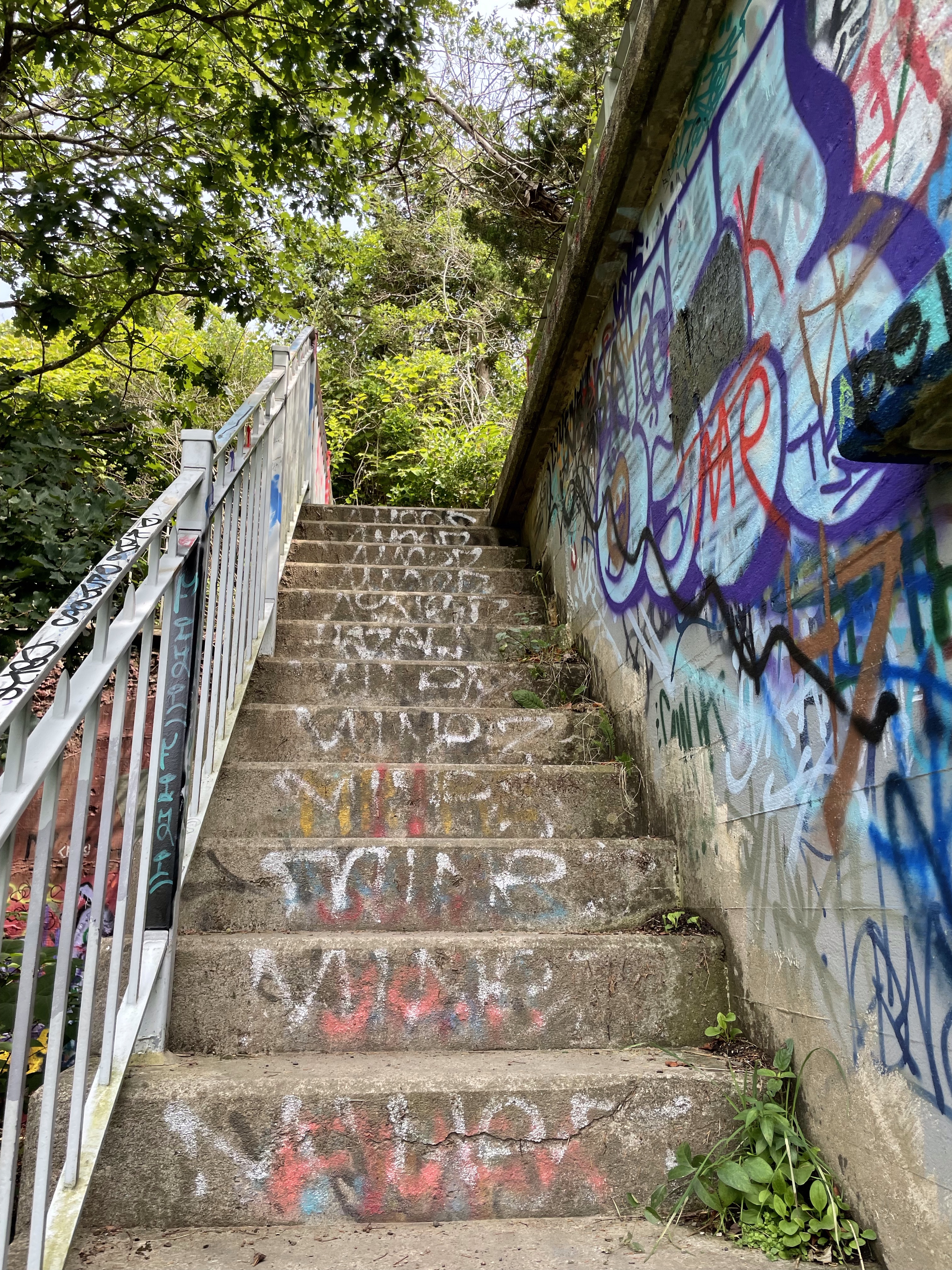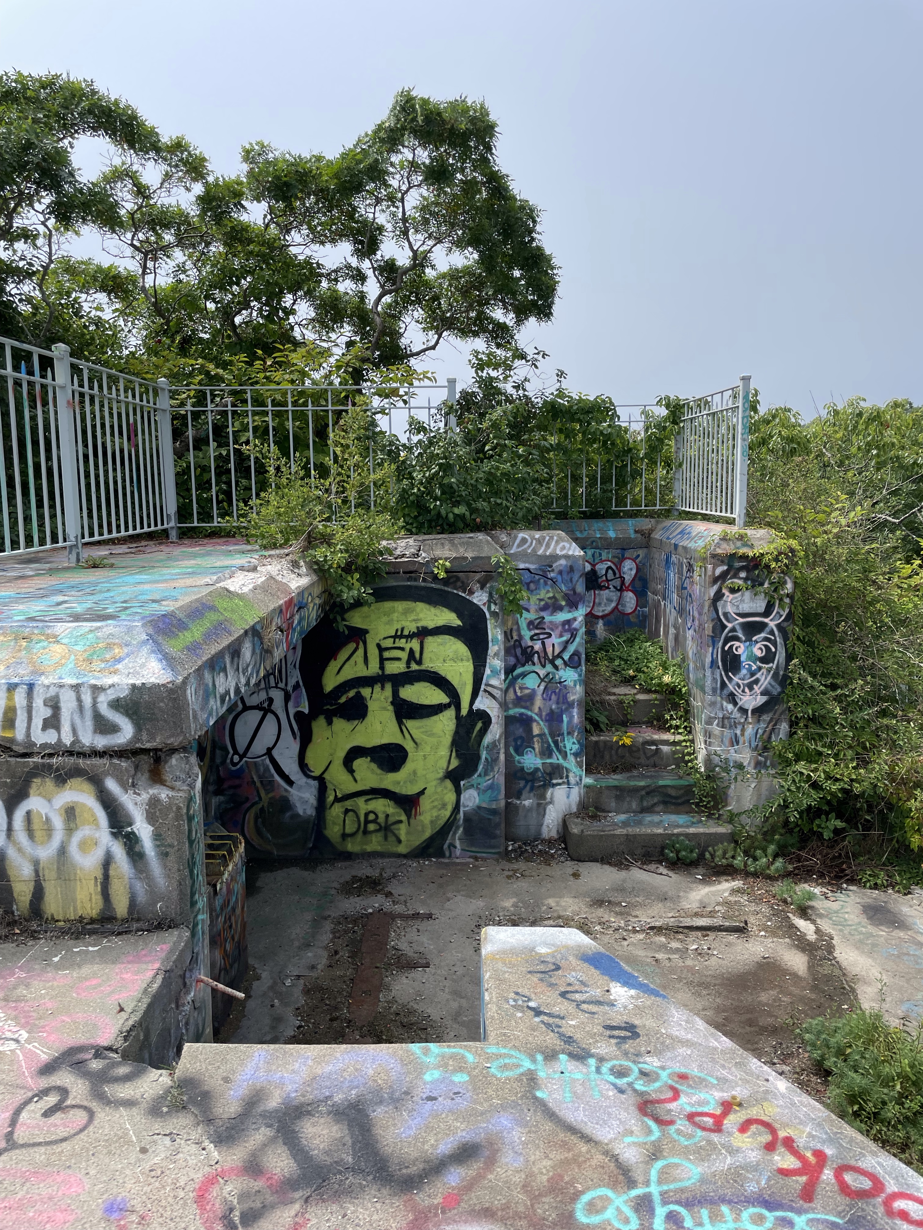 Our first stop was at Fort Wetherhill State Park. There are multiple parking lots and we begin by parking at the very first one once you enter the park. There are lots of picnic tables and restrooms. We had a picnic lunch, that we packed with us, and got refreshed and ready to explore. I knew ahead of time that the fort is covered in graffiti and it has become quite the artists place. I imagine someone who did not know that ahead of time would shun at it and not explore. You should definitely explore.