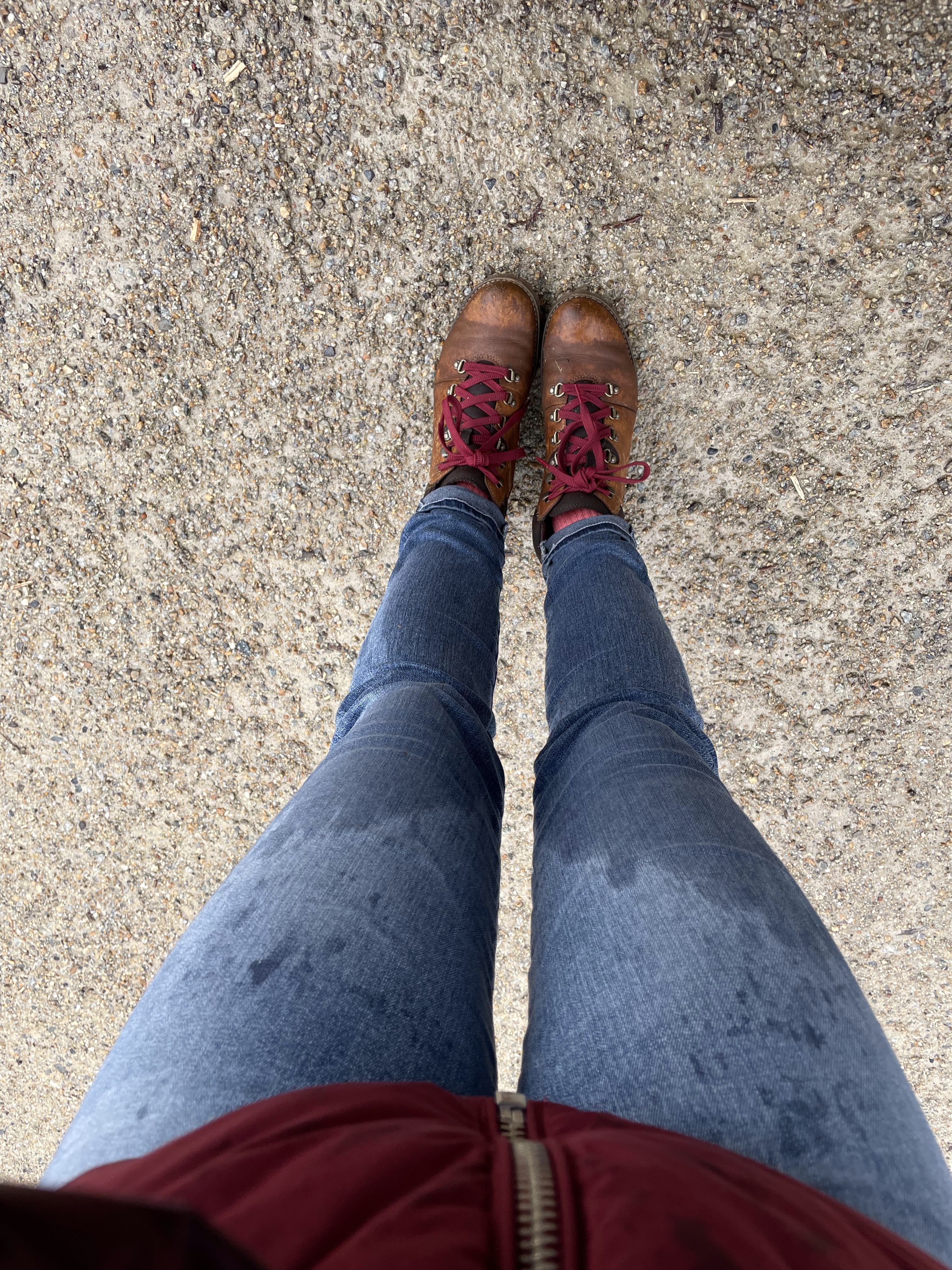 We had the good sense to bring an extra pair of shoes. I wore a poncho so the top half of me stayed dry. We realized we needed extra socks too! I had seen some at the Louisa May Alcott gift shop; we drove back there after our walk and each bought new socks. Live and learn.