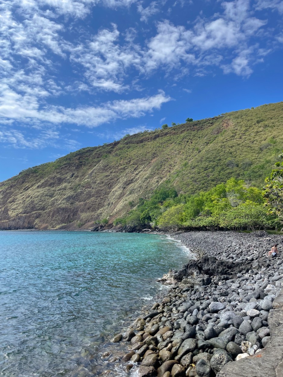 I wanted to visit/see the Captain Cook Monument and do more snorkeling for our last afternoon. We make a quick stop at the end of Puuhonua Rd to see the historical sites there. The monument was tiny across the bay! A good place to kayak to for future reference. We headed to Honaunau Bay next.. We walked around the national park area and decided to snorkel right there at Two Step. It was the best snorkel spot!