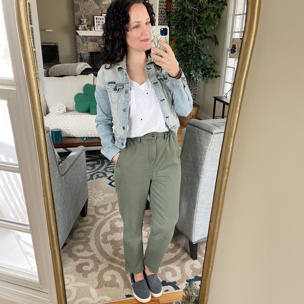 I love a jean jacket layer! These furr lined Toms are very comfortable and I’m still loving my pleated trouser pants from autumn.