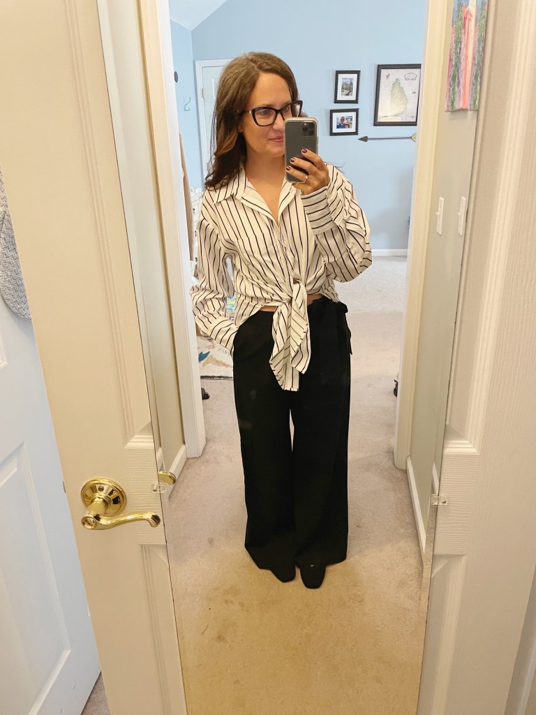 The following morning I wore a striped blouse from H&M with wide leg black pants I’ve had forever (from Nordstrom). Comfortably walked around in my new Vivaia Mary Jane flats.