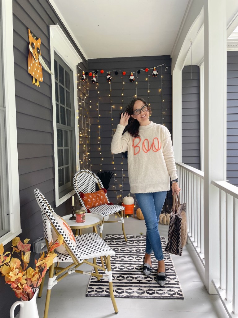 It’s almost the first day of autumn and that means Halloween is coming! To combat my sadness at my pool closing I have to jump head first into fall life. The leaves are beginning to turn and the mornings are cooling off. I have a new Boo sweater from Pink Lily (click here for link) that I love. It is currently out of stock, but these outfits can work with any autumn/seasonal sweater. Here is how I’m styling a Halloween sweater three ways.