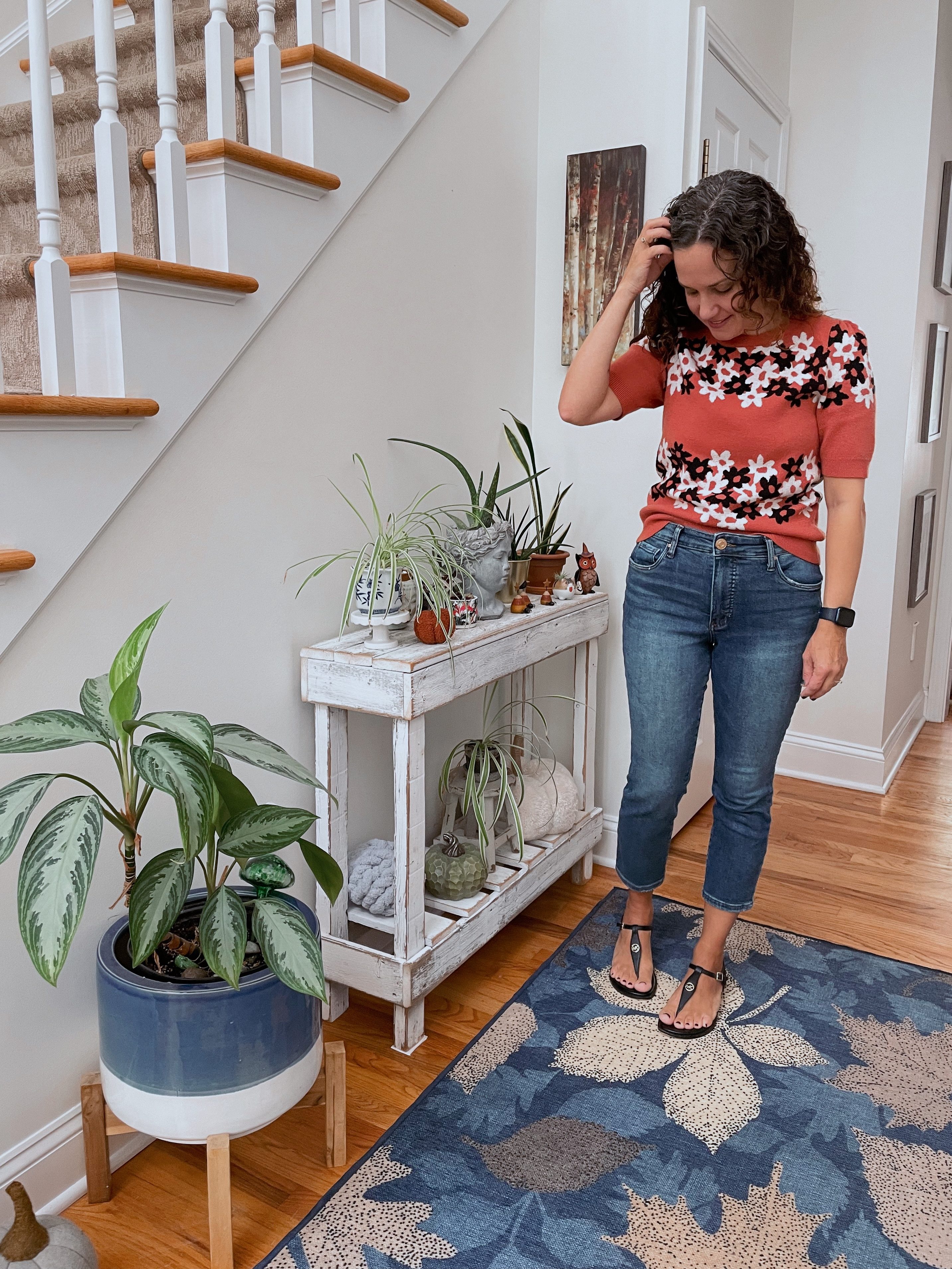 I think a lot of fall denim styles this year (2023 for future reference!) revolve around wider or straight leg, but cropped jeans can still be a staple for your fall wardrobe. My love of shorter boots and booties work well with this style jean, allowing for more versatility for autumn styles with that type of boot. Here are three ways I’m wearing cropped jeans for fall.