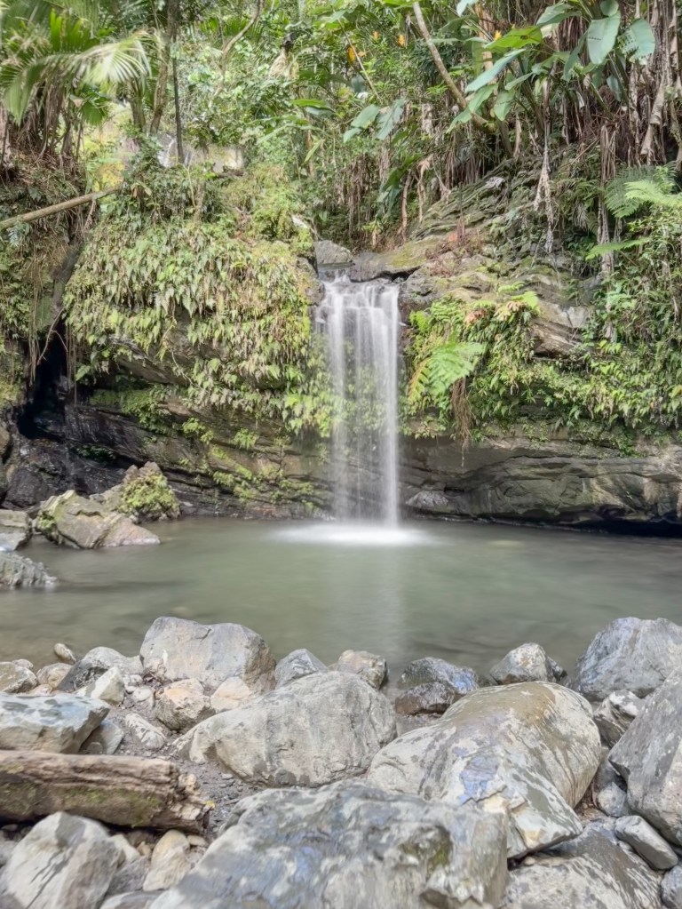 Day two was for El Yunque National Forest! We drove our rental car into the park around 8:30 am. I knew it was going to be a hot day and wanted to get going early. The visitor center opens at 9 am, but we drove right past it and followed the road into the forest. Going early is the best choice. As the day went on, parking got harder and harder at each stop. There was a bunch of construction going on March 2025. Once it is done there will be a lot more parking available in the future.