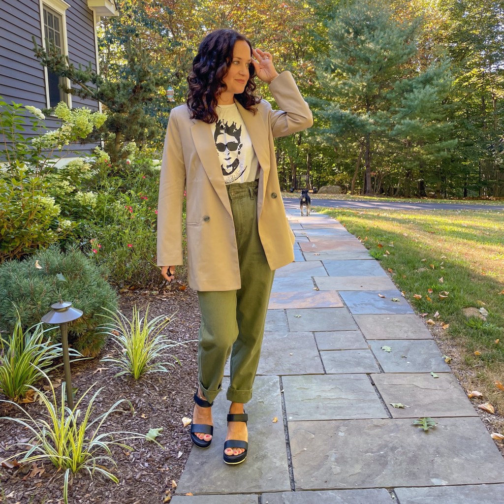 I’m definitely a jeans girl but these paper bag pants are so comfortable! Mine are from T.J.Maxx; linked similar. RBG graphic T goes with everything.