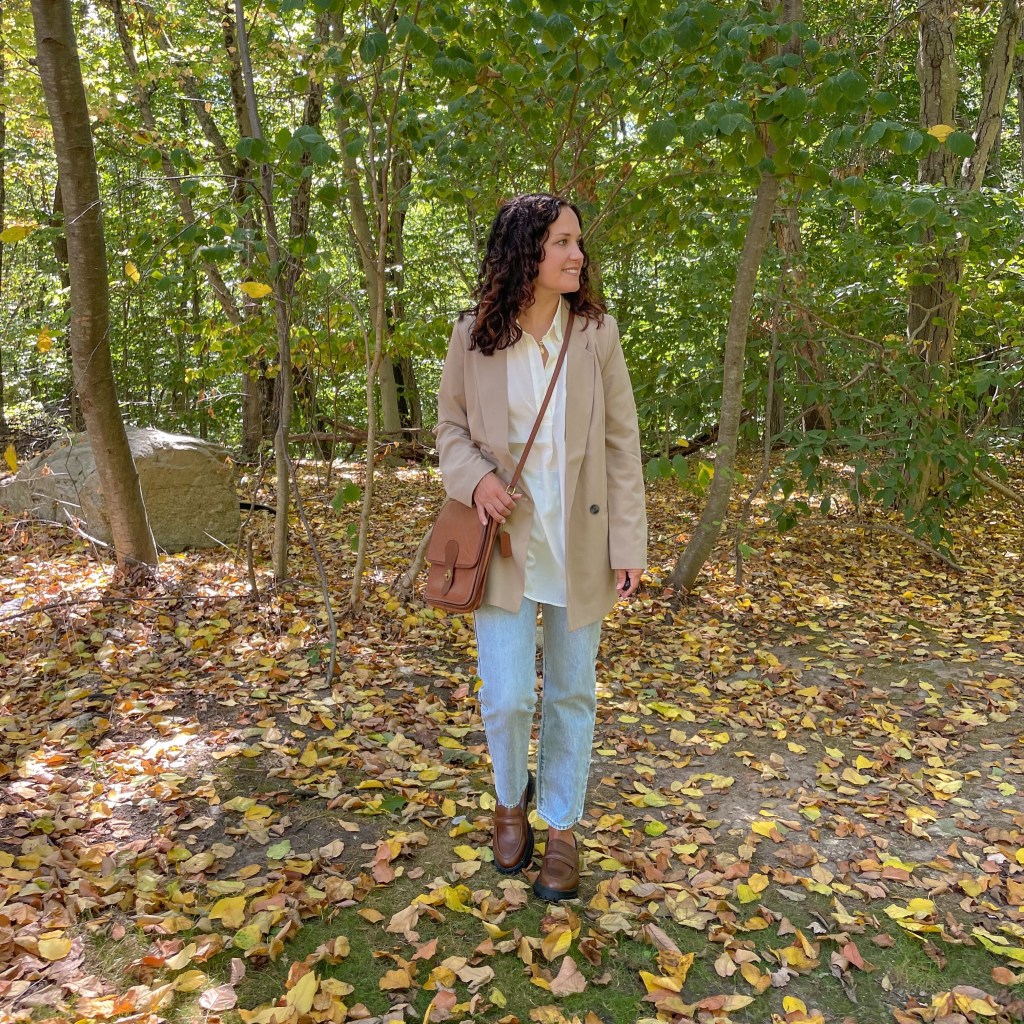 Cannot go wrong with a white blouse underneath a blazer. This would also work with faux leather leggings and boots as it gets colder out. My vintage Coach bag is from a thrift store and the links I found for similar are a bit expensive, sorry! I just got in these Madewell loafers, look for a blog post on loafer looks soon.