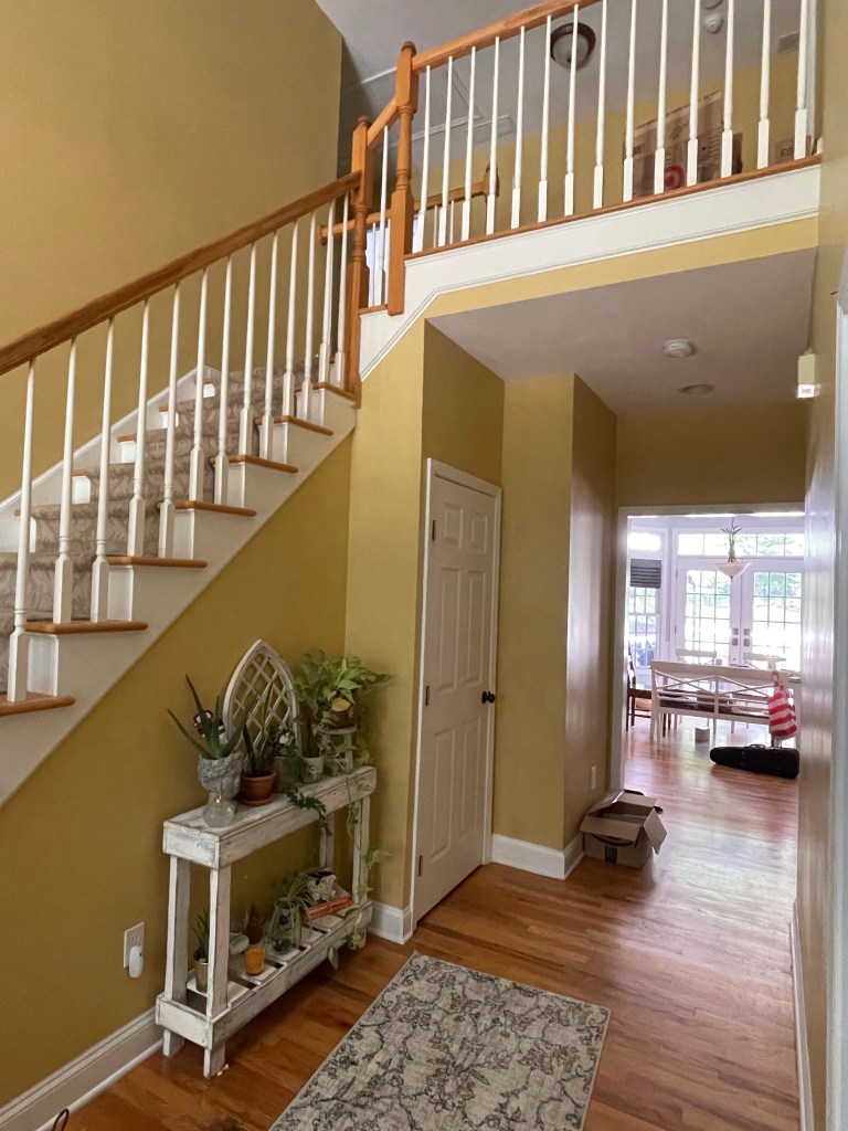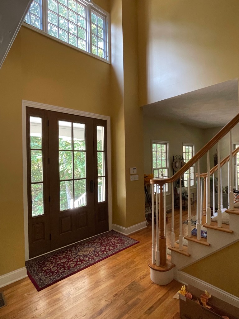 Recently one of those small changes was painting my two-story foyer. When I moved into my home it had a lot of gold paint inside and outside and I’ve slowly painted over it, making the house my home. The two-story foyer was something I couldn’t do, I hate heights! I also hate paying someone to do something I’m perfectly capable of doing myself. Thus several years went by… then several more.