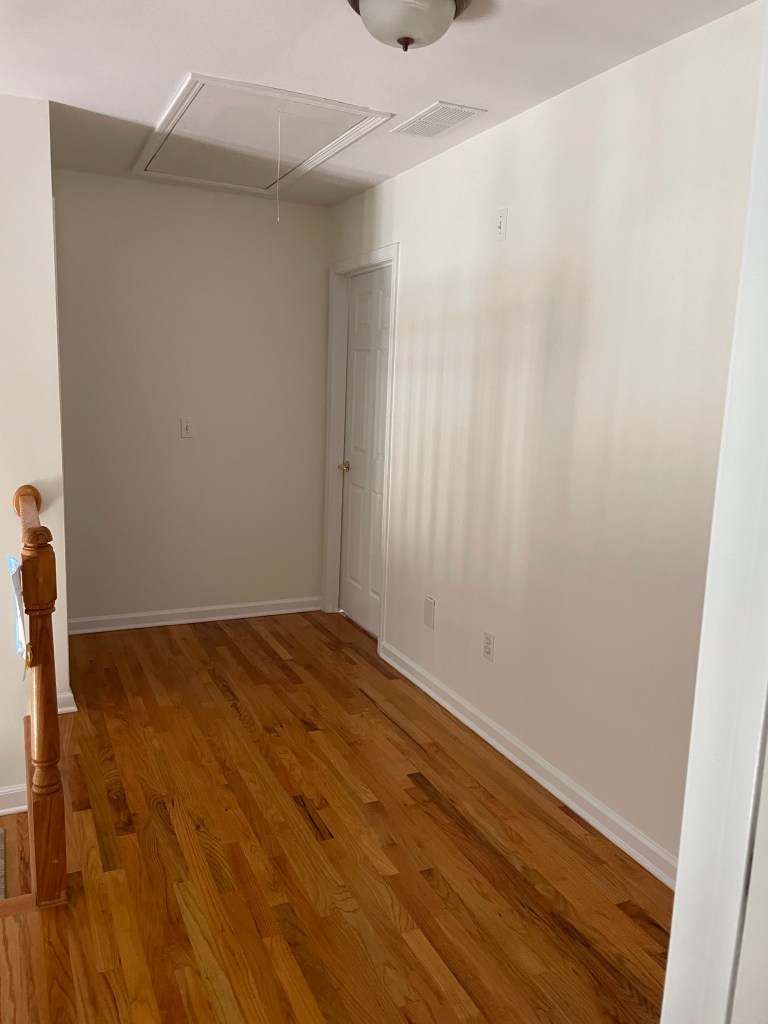 The space has brightened up dramatically! The color is Benjamin Moore White Dove, a classic. I did get a new front door spring of 2022 and the added windows opened up the foyer light as well. I wouldn’t consider new doors to be a small update though!