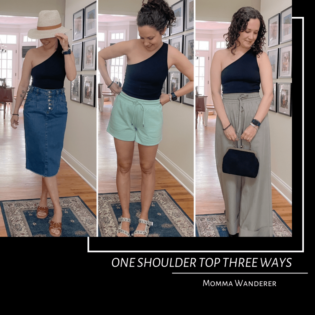 Our weather in Connecticut looks to finally be heading in the right direction. I’m in desperate need of sunshine and warmth! In a recent trip to Target I found two simple summer tops that can be worn many ways. This simple black one shoulder top is versatile! Here are three ways I’m styling a one shoulder top for summer.