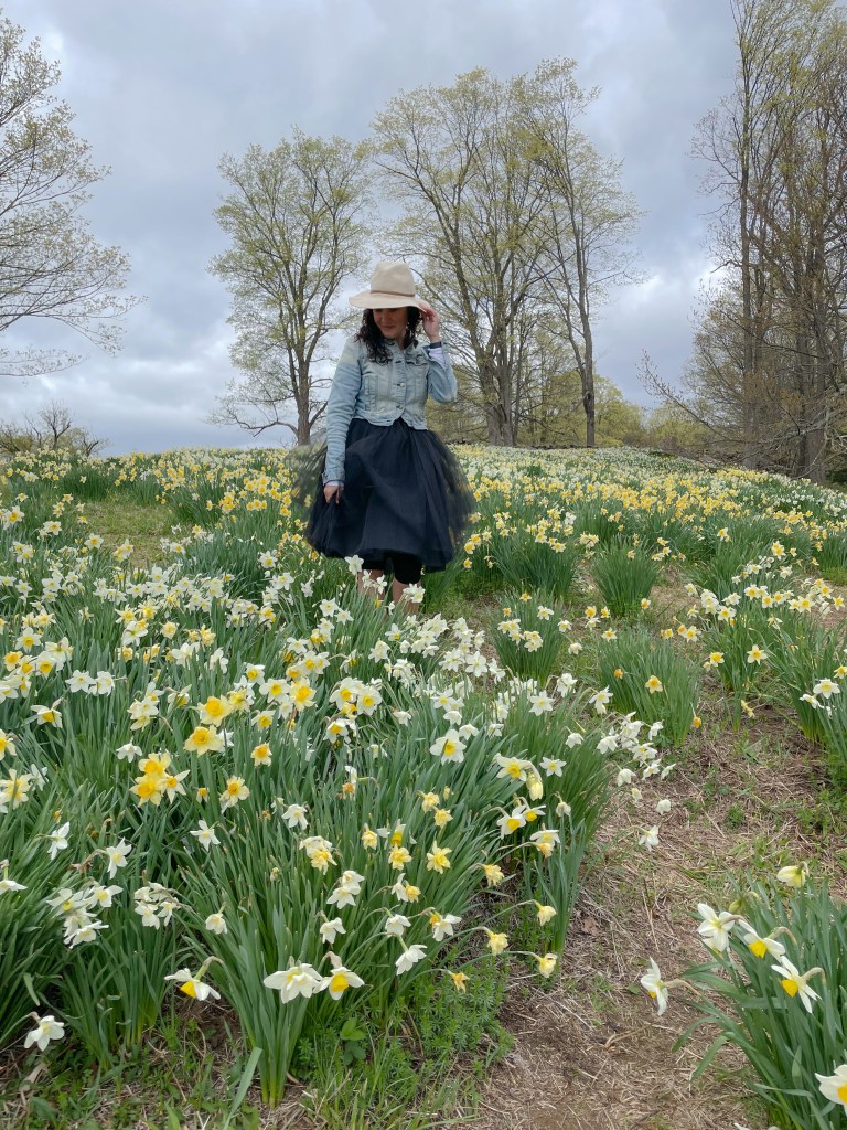I’ve been a fan of tulle for years and it is becoming more popular. This trend ties in with crochet styles; think of a feminine and air flowing vibe. My outfit below was on a cooler day, but for a warmer day, mesh and open weave dresses, tops, even pants, are the look. This also ties into the balletcore trend I talked about for spring.